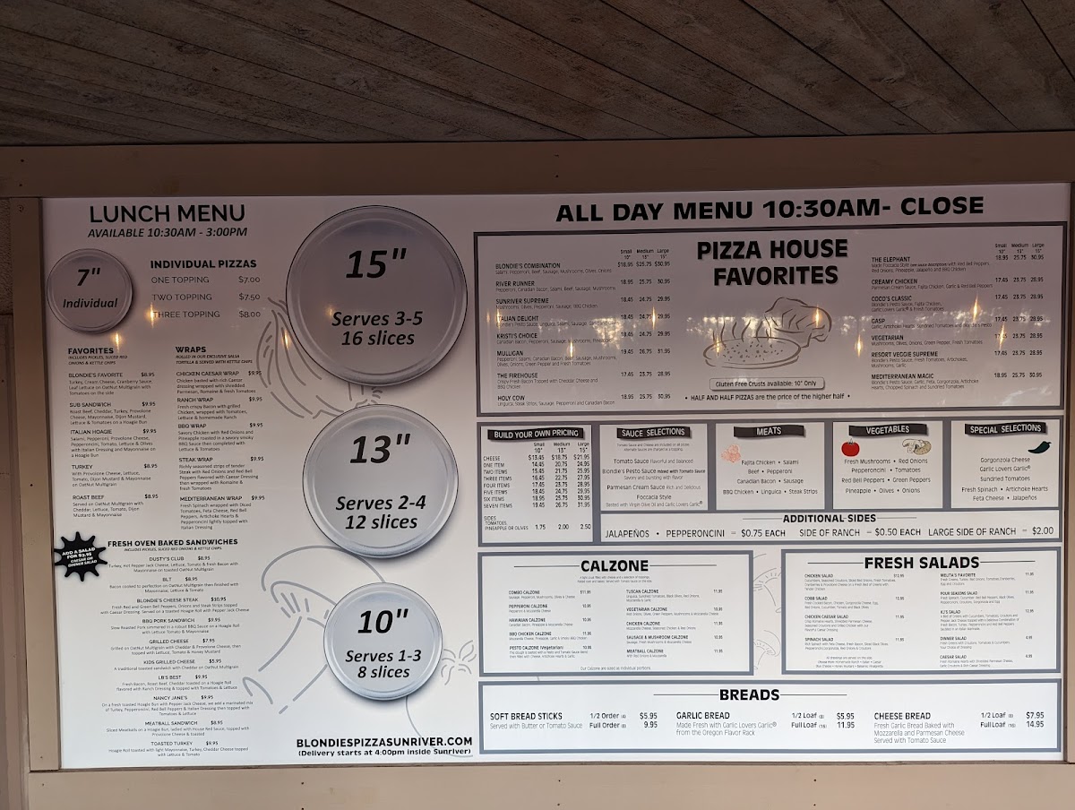 In conclusion, **Blondie's Pizza** is a must-try for anyone visiting Sunriver or locals looking for a quality pizza experience. With a mixture of classic and innovative pizzas, friendly service, and a focus on value, this pizzeria captures the heart of what makes comfort food special. So next time you're in the area, remember to stop by, place your order, and savor the taste of Blondie's!